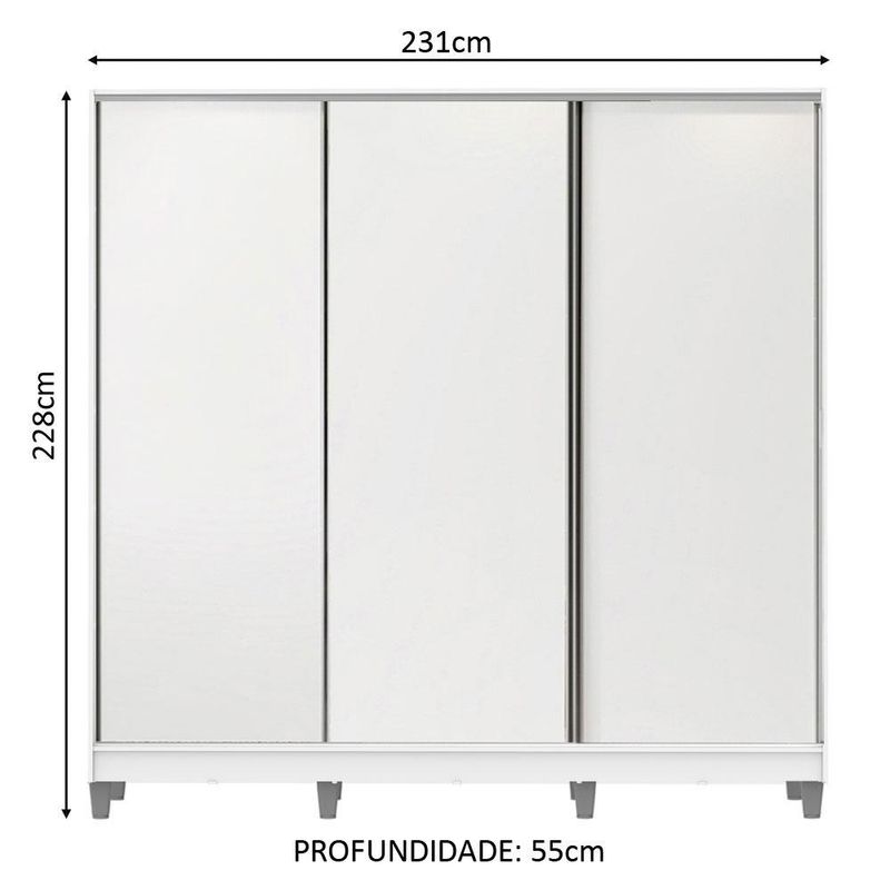 Guarda Roupa Casal Madesa Royale 100% MDF 3 Portas de Correr com Pés REF: 511197_Sicredi