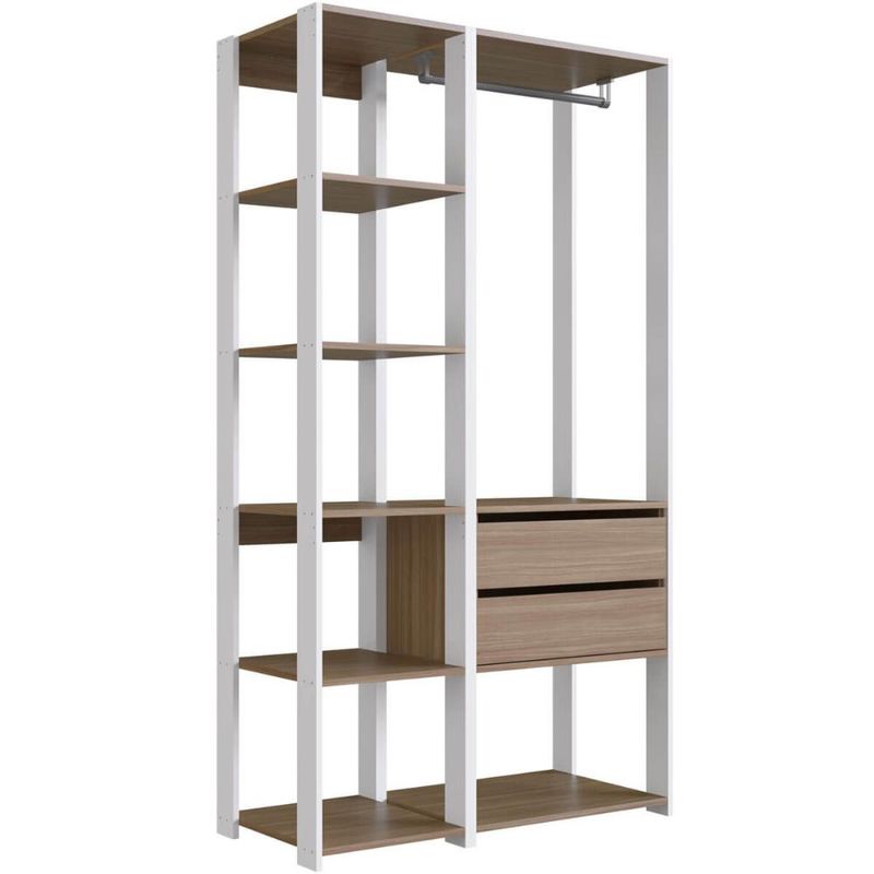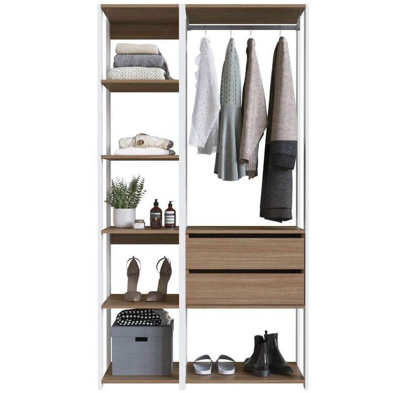 Casa e DecoraçãoMóveisGuarda-roupa e roupeirosGuarda Roupa Closet 2 Peças Cabideiro Gaveta Branco e Montana com Nichos Módulos Multiuso Prodecor