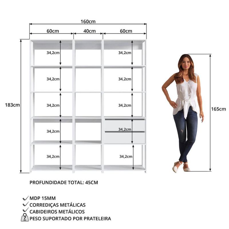 Casa e DecoraçãoMóveisGuarda-roupa e roupeirosGuarda Roupa Closet 3 Módulos Nicho E Gaveta Branco Prodecor Easy Estante Multiuso