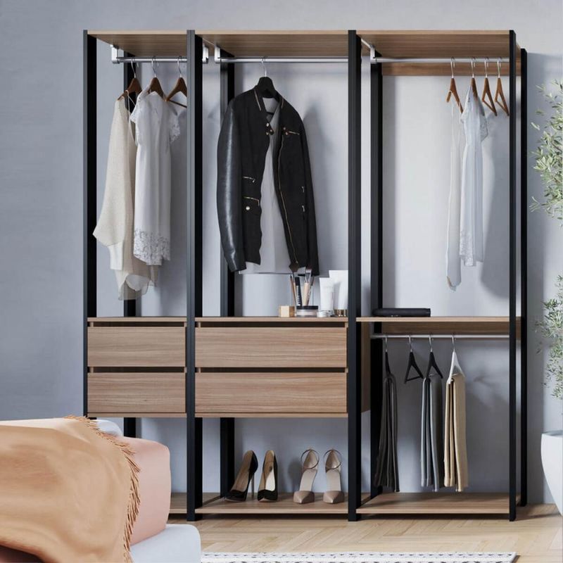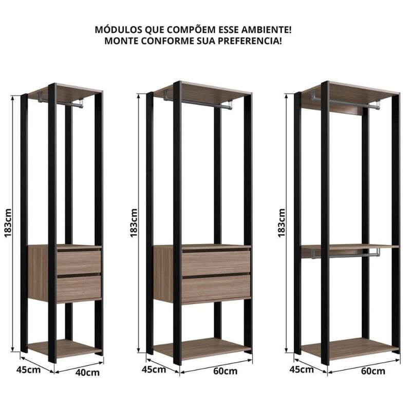 Guarda Roupa Closet 3 peças Cabideiro Gaveta Preto e Montana com Nichos Easy Prodecor REF: 7898970136491