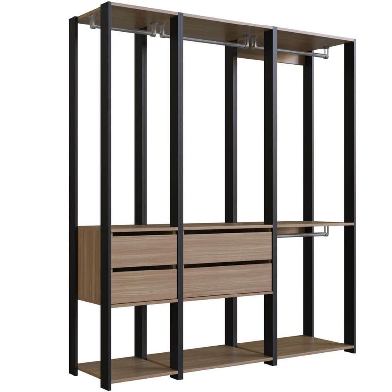 Casa e DecoraçãoMóveisGuarda-roupa e roupeirosGuarda Roupa Closet 3 peças Cabideiro Gaveta Preto e Montana com Nichos Easy Prodecor