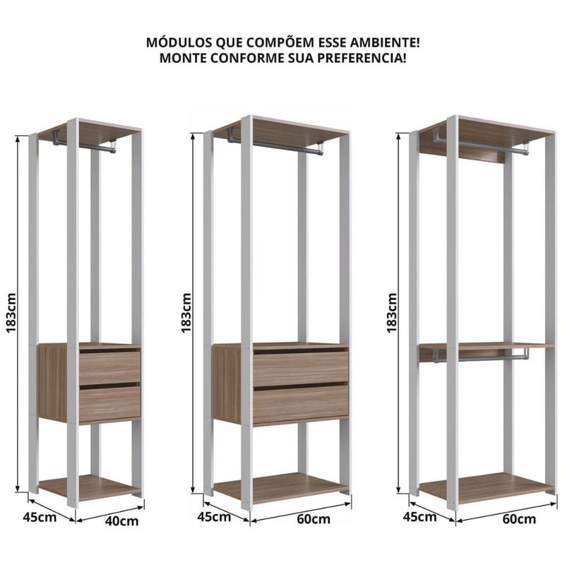 Guarda Roupa Closet 3 Peças com 3 Cabideiros 4 Gavetas e 2 N REF: 7898970136484
