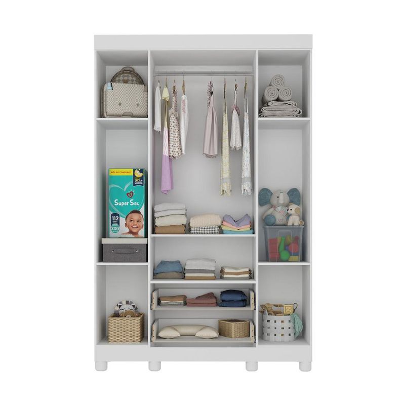 Casa e DecoraçãoMóveisGuarda-roupa e roupeirosGuarda-roupa Infantil 122cm com Vidro 4 Portas e 2 Gavetas Fofura Multimóveis MP4483