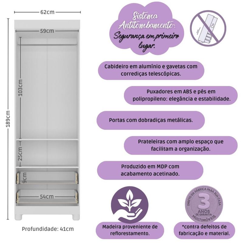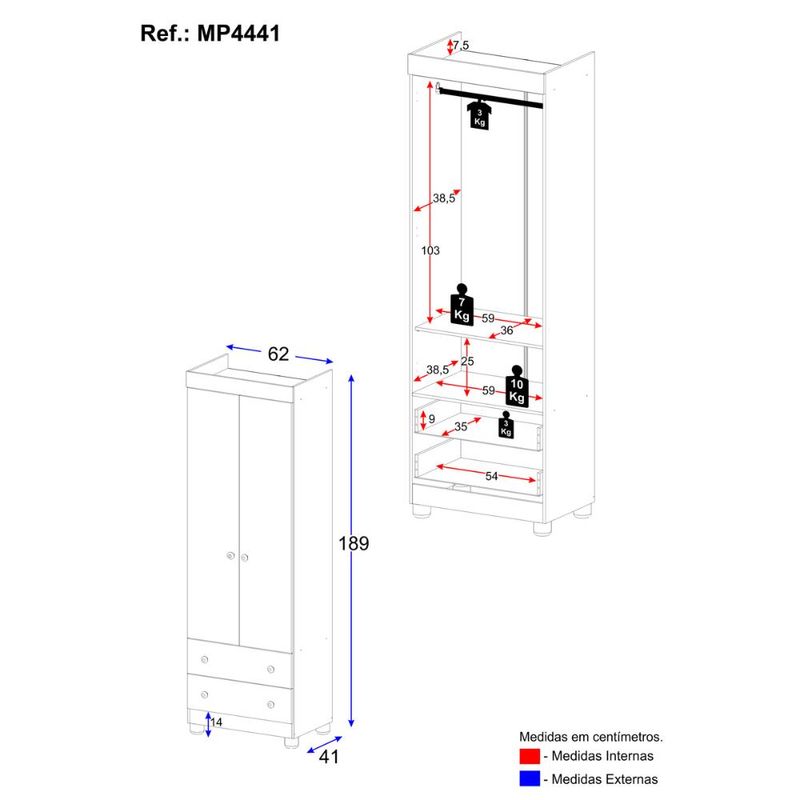 Casa e DecoraçãoMóveisGuarda-roupa e roupeirosGuarda-roupa Infantil 62cm 2 Portas e 2 Gavetas Allegra Multimóveis MP4441