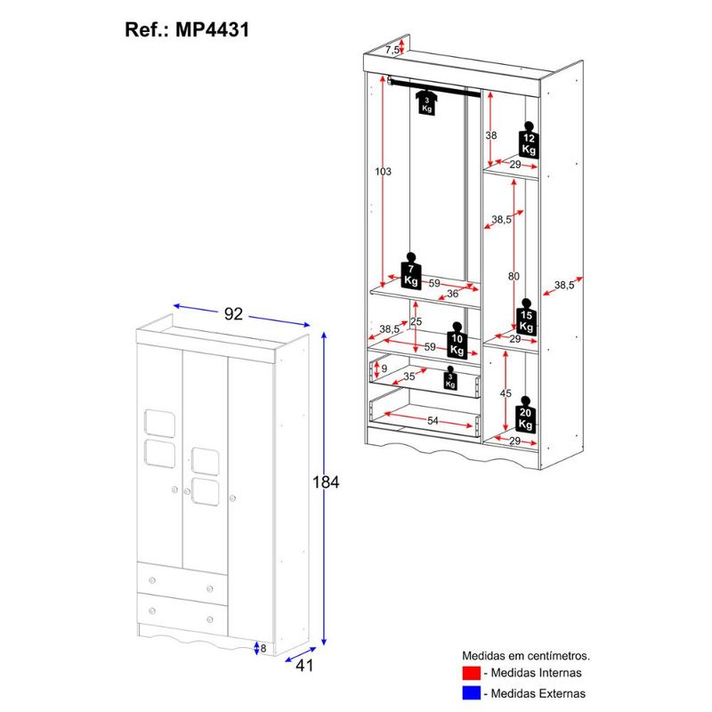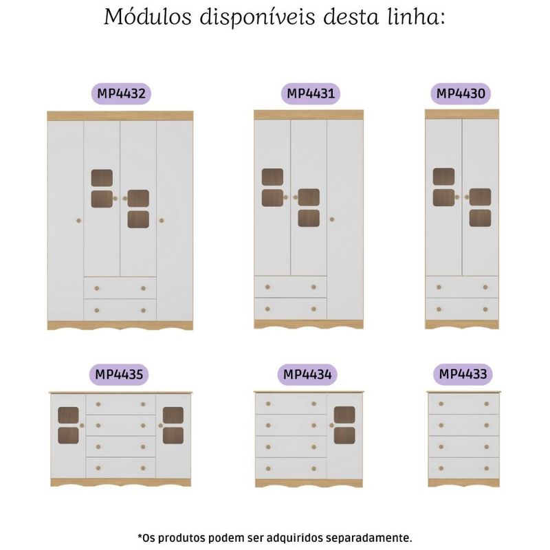 Guarda-roupa Infantil 92cm com Vidro 3 Portas e 2 Gavetas Serena Multimóveis MP4431 REF: 7899390834035