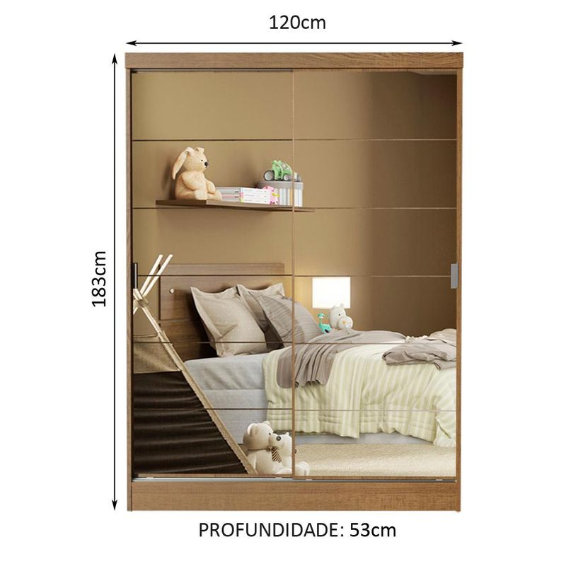 Guarda-Roupa Infantil Madesa Nick 2 Portas de Correr de Espelho - Rustic REF: 511418_Sicredi