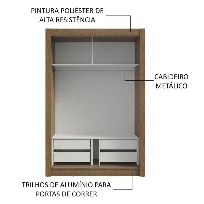 Guarda-Roupa Solteiro 2 Portas de Correr com Espelho 4 Gavetas Rustic/Cinza Vivare Plus Madesa REF: 585228_Sicredi