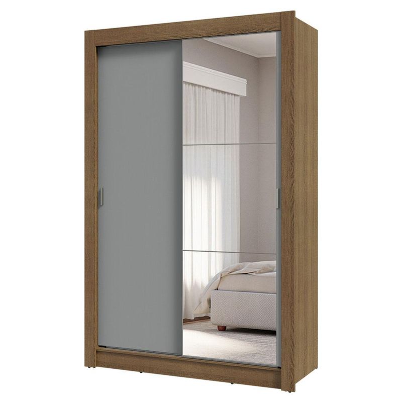 Casa e DecoraçãoMóveisGuarda-roupa e roupeirosGuarda-Roupa Solteiro 2 Portas de Correr com Espelho 4 Gavetas Rustic/Cinza Vivare Plus Madesa