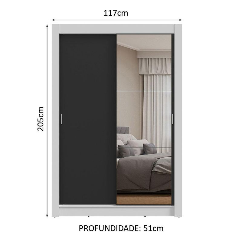 Guarda-Roupa Solteiro 2 Portas de Correr com Espelho Branco/Preto Milano Madesa REF: 585231_Sicredi