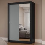 Casa e DecoraçãoMóveisGuarda-roupa e roupeirosGuarda-Roupa Solteiro 2 Portas de Correr com Espelho Preto/Cinza Milano Madesa