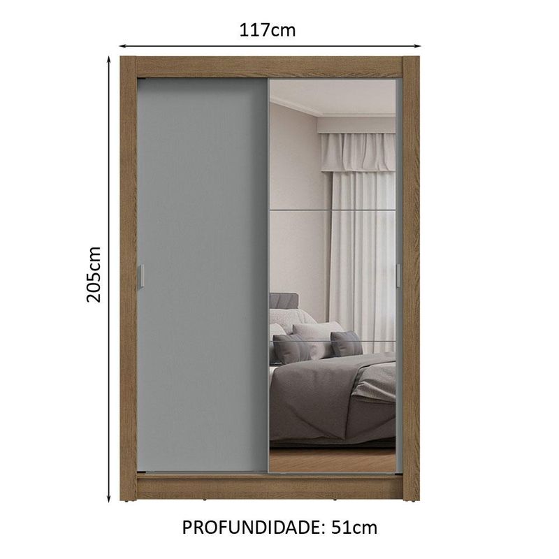 Guarda-Roupa Solteiro 2 Portas de Correr com Espelho Rustic/Cinza Milano Madesa REF: 585239_Sicredi