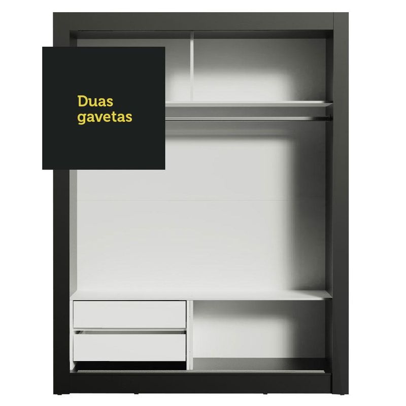Guarda-Roupa Solteiro Madesa Dallas 2 Portas de Correr 2 Gavetas - Preto/Branco REF: 511426_Sicredi