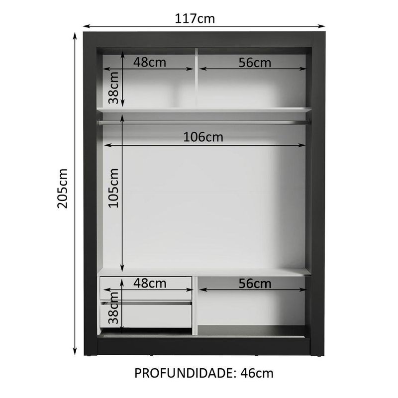 Guarda-Roupa Solteiro Madesa Dallas 2 Portas de Correr com Espelho 2 Gavetas REF: 511437_Sicredi