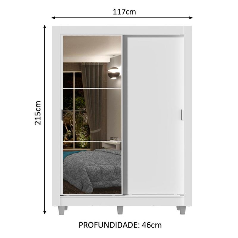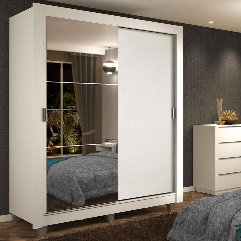 Casa e DecoraçãoMóveisGuarda-roupa e roupeirosGuarda-Roupa Solteiro Madesa Dallas 2 Portas de Correr com Espelho 2 Gavetas com Pés - Branco