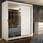 Guarda-Roupa Solteiro Madesa Dallas 2 Portas de Correr com Espelho 2 Gavetas com Pés - Branco REF: 511443_Sicredi