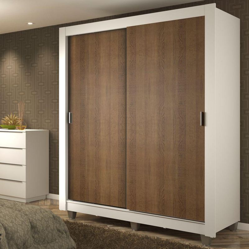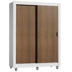 Guarda-Roupa Solteiro Madesa Dallas Plus 2 Portas de Correr 4 Gavetas com Pés - Branco/Rustic REF: 511463_Sicredi