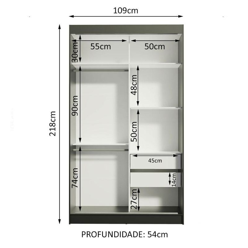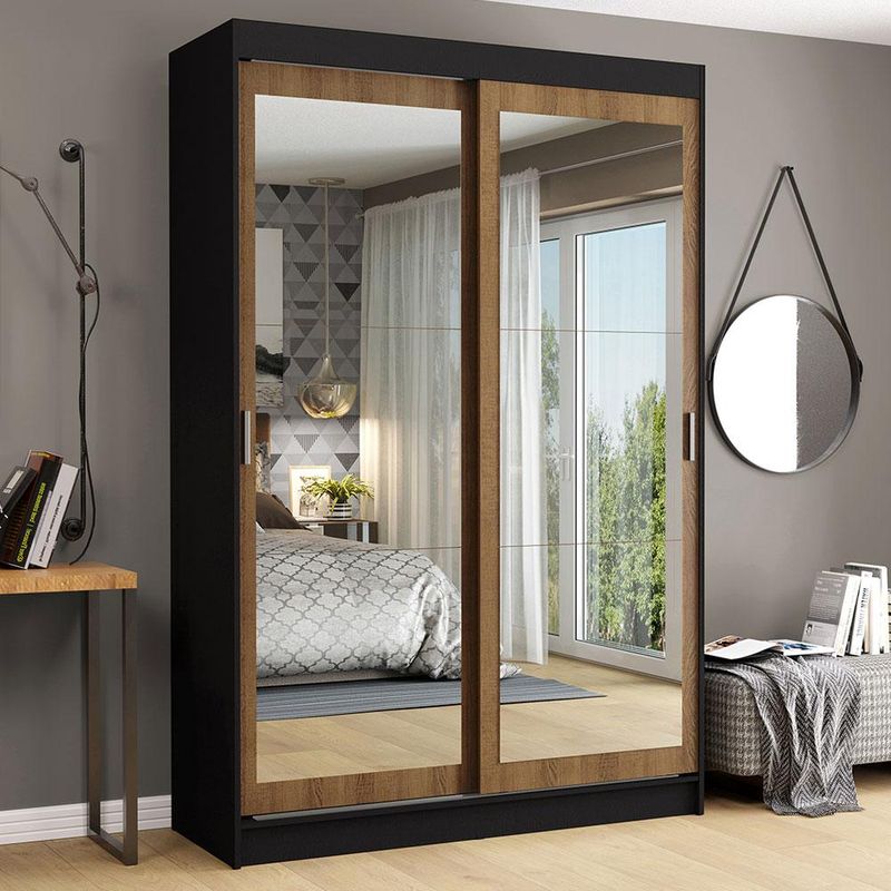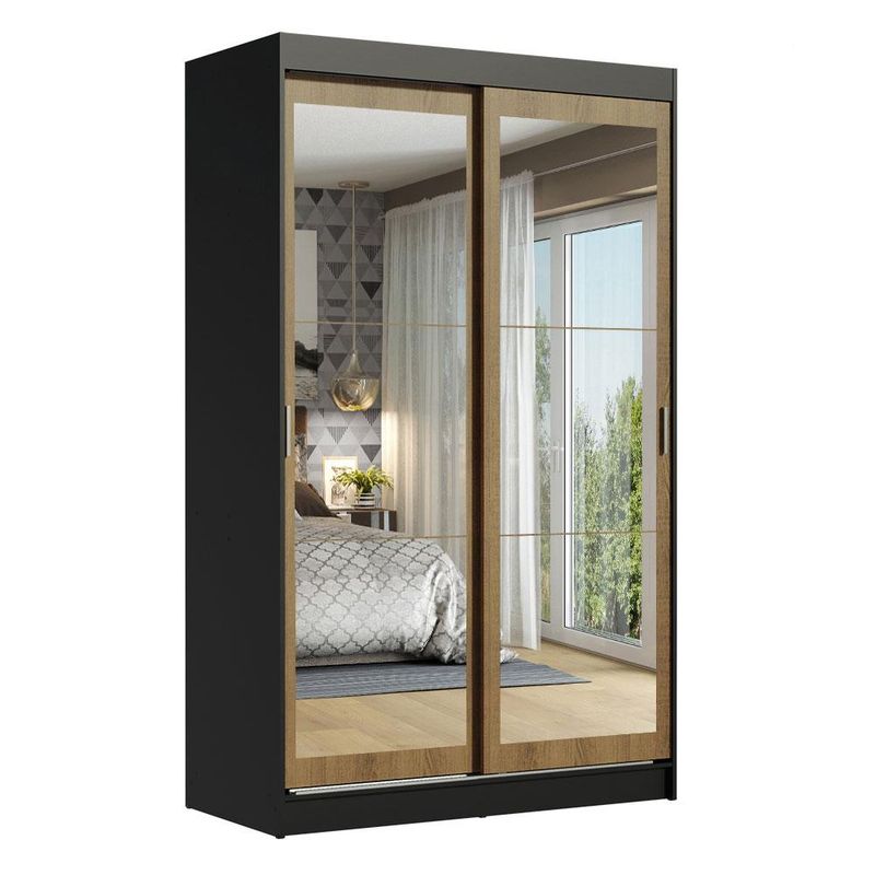 Guarda-Roupa Solteiro Madesa Tokio 2 Portas de Correr de Espelho 2 Gavetas - Preto/Rustic REF: 511557_Sicredi
