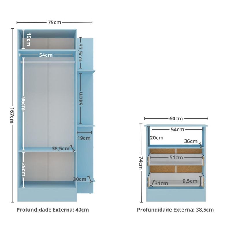 Casa e DecoraçãoMóveisGuarda-roupa e roupeirosGuarda-Roupas 2 Portas com Cômoda 2 Gavetas Multimóveis MP4264