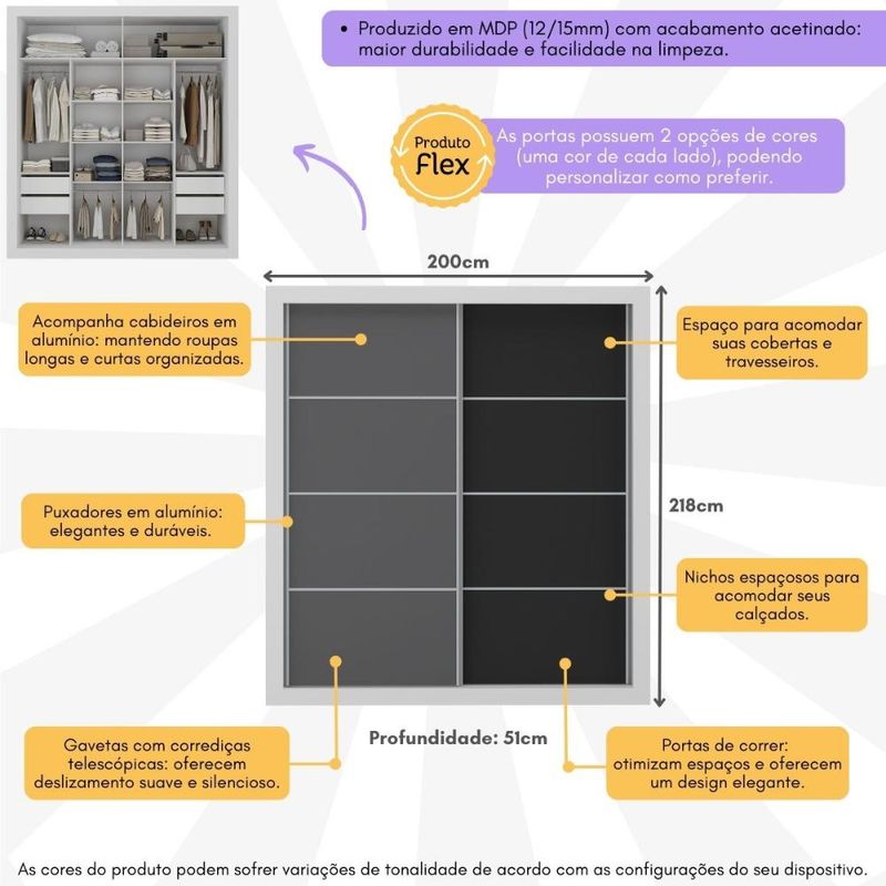 Casa e DecoraçãoMóveisGuarda-roupa e roupeirosGuarda-Roupas Casal 2 Portas de Correr 4 Gavetas Alasca Multimóveis MP4263