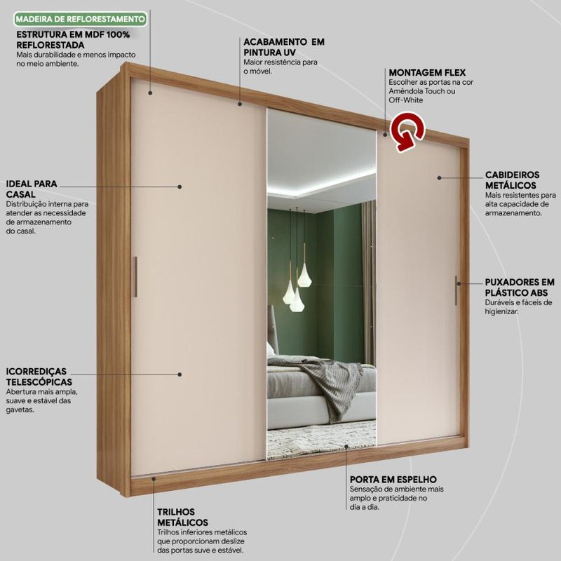 Guarda-Roupas Casal 3 Portas com Espelho Multimóveis CR35234 REF: 569375_Sicredi