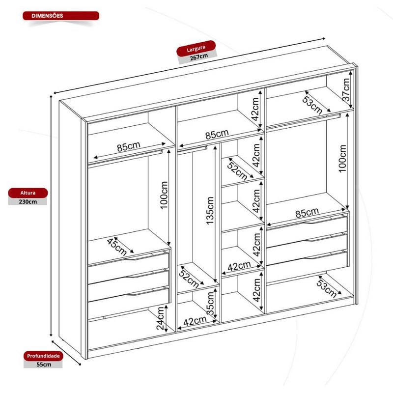 Guarda-Roupas Casal 6 Portas 267cm Multimóveis CR35228