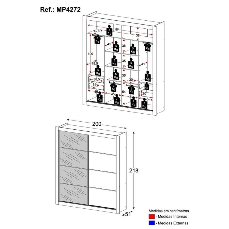 Casa e DecoraçãoMóveisGuarda-roupa e roupeirosGuarda-Roupas Casal com Espelho 2 Portas de Correr 4 Gavetas Dallas Multimóveis MP4272