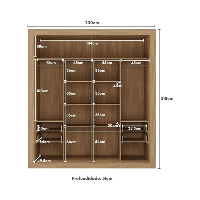 Guarda-Roupas Casal com Espelho 2 Portas de Correr 4 Gavetas Dallas Multimóveis MP4314 REF: 658304_Sicredi