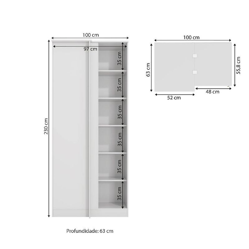 Casa e DecoraçãoMóveisGuarda-roupa e roupeirosGuarda Roupas de Canto Reto Kappesberg 1 Porta N530 Branco