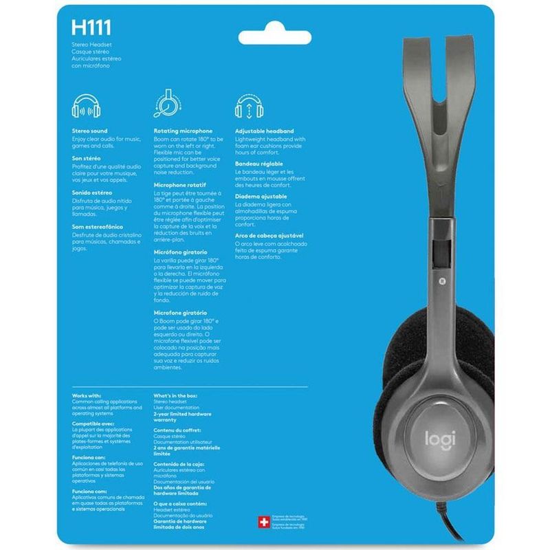 Eletrônicos e TecnologiaÁudioAcessóriosHeadset Logitech H111 Estereo Analogico P3 Cinza