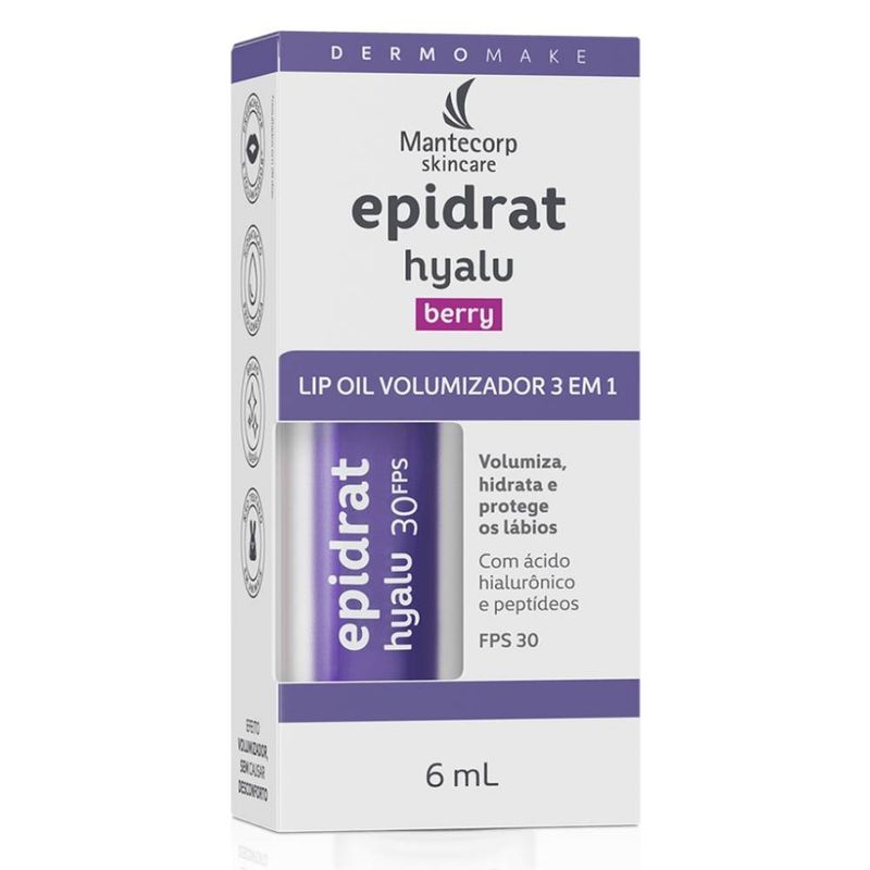 Beleza e SaúdeBelezaCuidados FaciaisHidratante Labial Epidrat Hyalu Lip Oil Berry Fps30 6ml