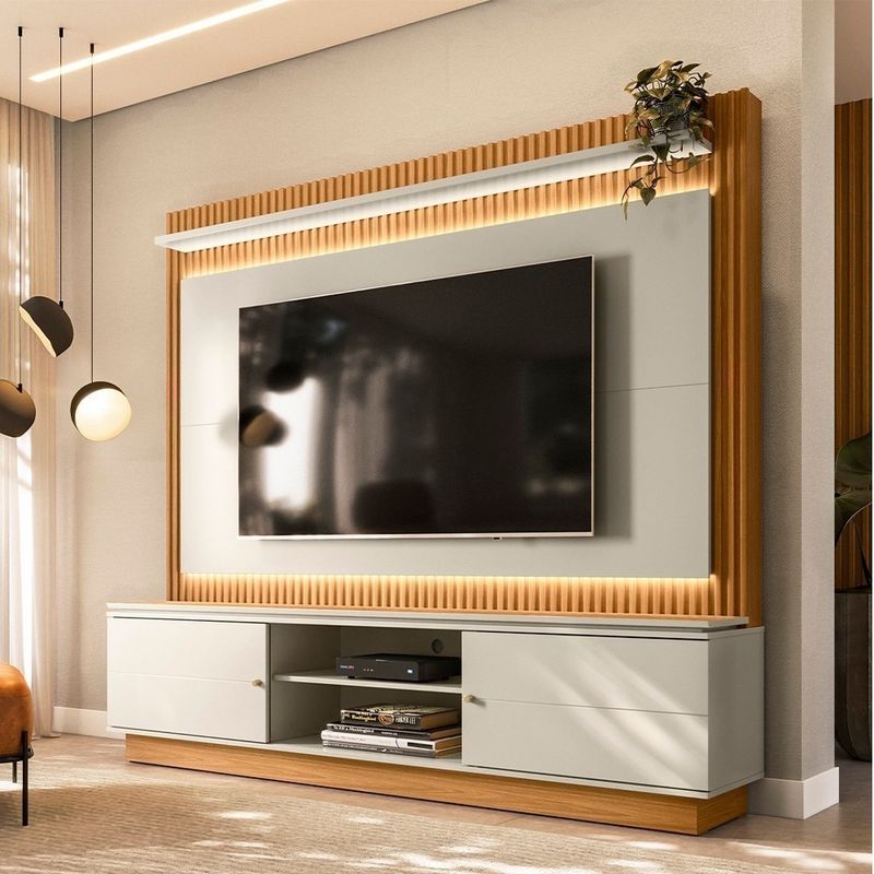 Casa e DecoraçãoMóveisRack e painel de TVHome Guararapes Led Até 75 Polegadas Linea Brasil Nature Off White