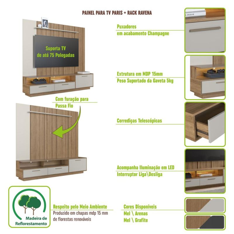 Casa e DecoraçãoMóveisRack e painel de TVHome Rack E Painel Para Tv Até 75 Polegadas Com Iluminação Led Ravenna Arenas