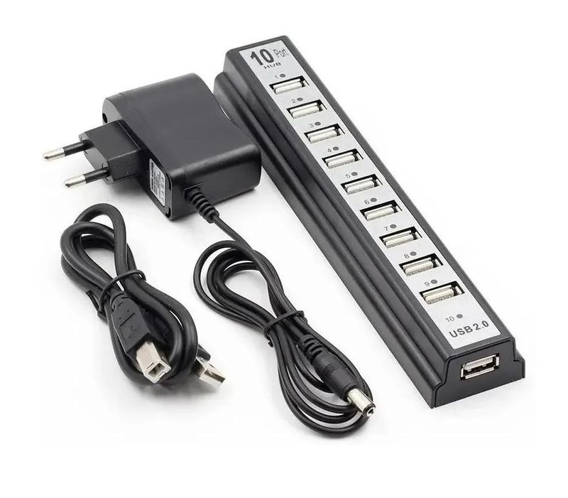 Eletrônicos e TecnologiaInformáticaAcessórios e PeriféricosHub Com 10 Portas Usb 2.0 + Fonte Alimentação Serve P/ Pc Notebook