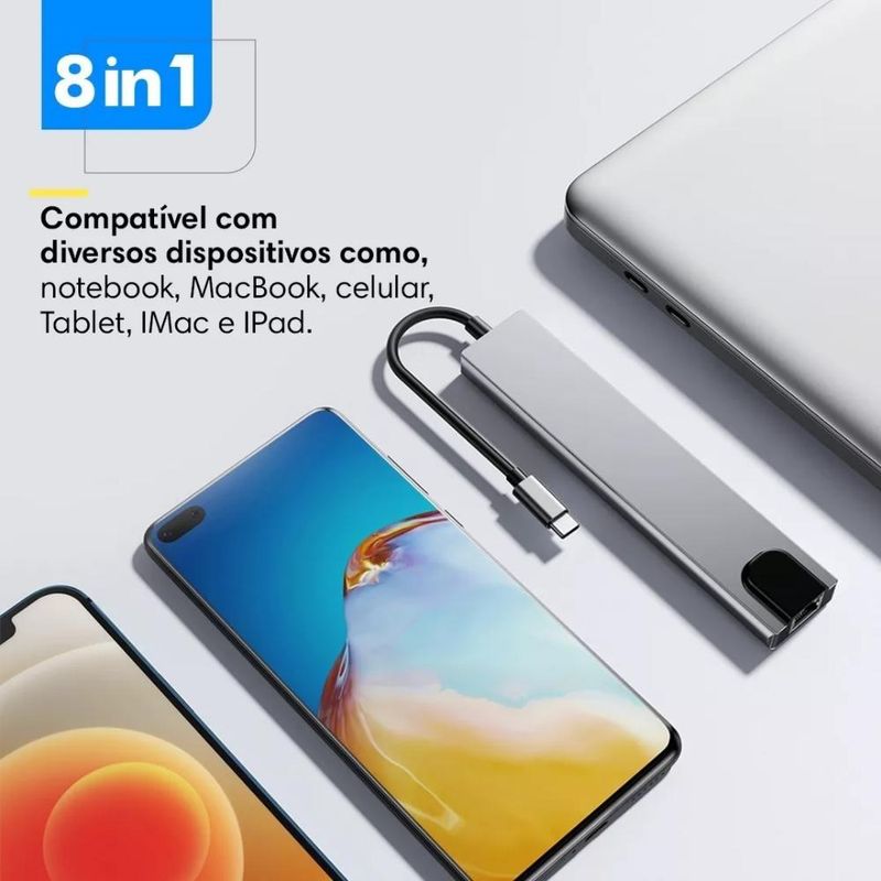 Hub Dock Station Usb Type-C 10Gbps 8X1 Hdmi 4k Lan Usb 3.0 Leitor SD REF: 7899718709113