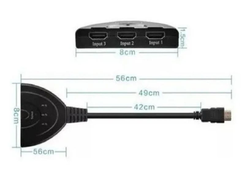 Eletrônicos e TecnologiaÁudioAcessóriosHub Switch Divisor Hdmi 1x3 Com Rabicho Hdmi Macho 45cm