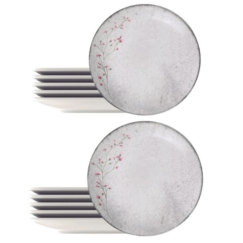 Jogo 12 Pratos Fundos 21cm Tramontina Floralis Porcelana Sopas Risotos Caldos REF: 7794464395354