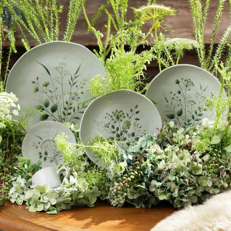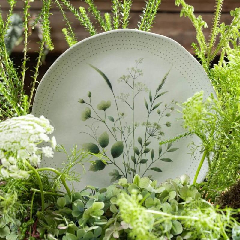 Jogo 12 Pratos Rasos Ammi Orgânico Cerâmica Floral 26,5cm Porto Brasil Mesa Posta REF: 7794464895335