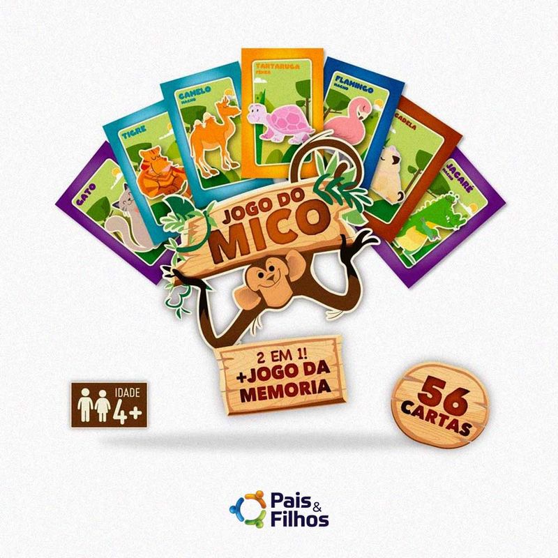 Brinquedos e JogosJogo 2 em 1 Memória Mico 56 Cartas Educativo Pais & Filhos