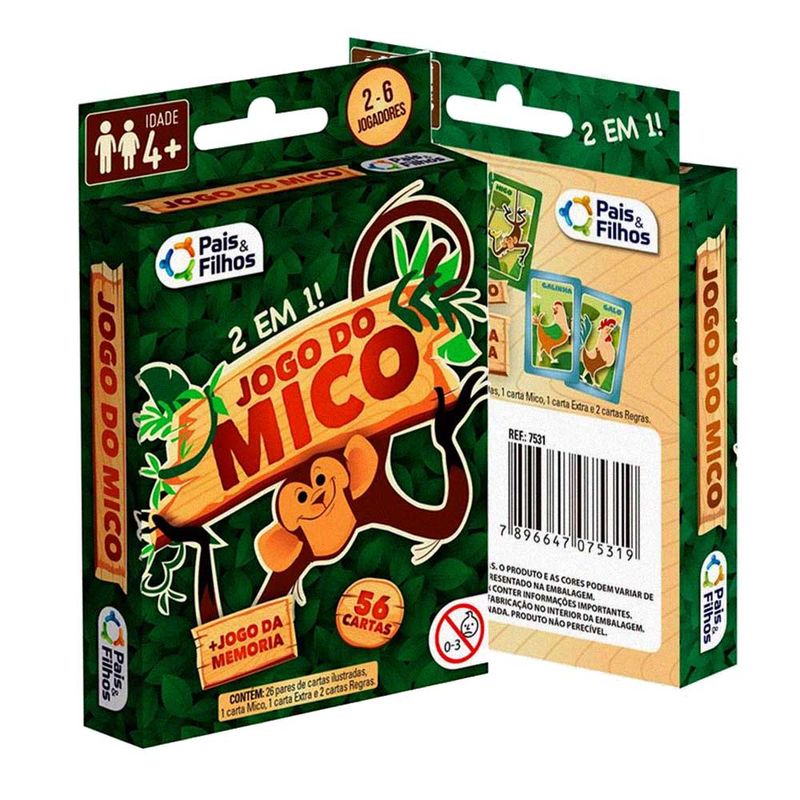 Jogo 2 em 1 Memória Mico 56 Cartas Educativo Pais & Filhos REF: 7896647075319