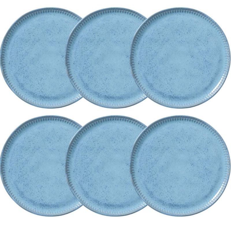 Jogo 6 Pratos 21cm Cerâmica Azul Para Sobremesa Mesa Posta Porto Brasil Linhas Breeze Raso REF: 7794463964490