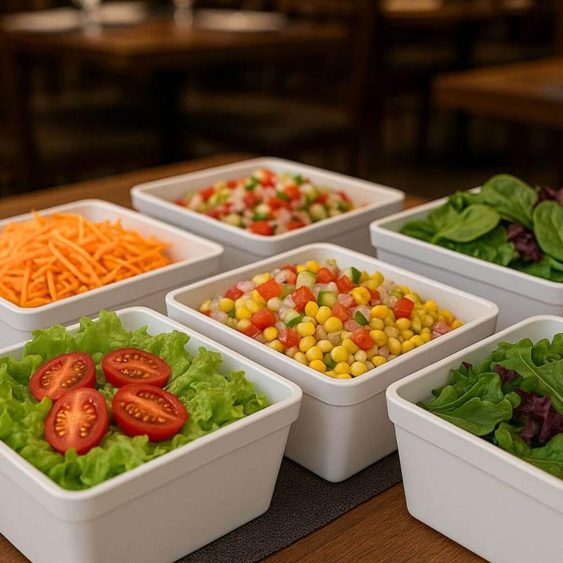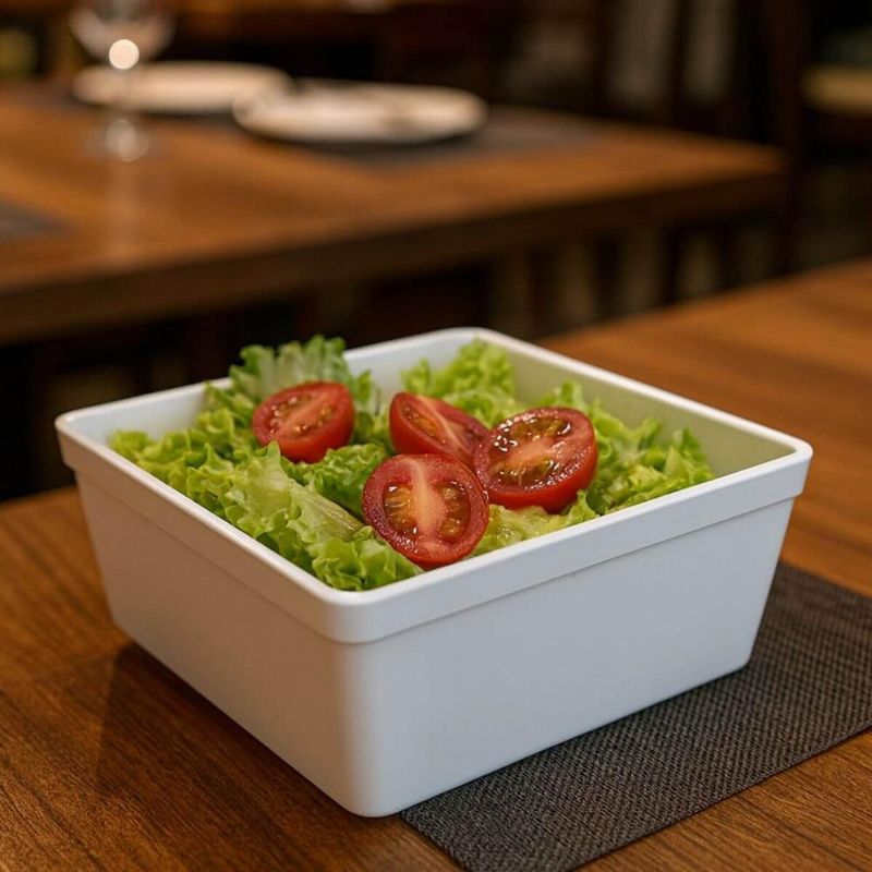Casa e DecoraçãoUtilidades DomésticasAcessórios para ServirJogo 6 Travessas Saladeiras Retangular Servir 1,4L Plástico Branco Coza Uno Restaurante Lanchonete