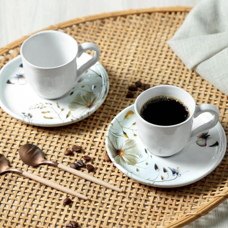 Casa e DecoraçãoUtilidades DomésticasCopos, Taças e CanecasJogo 6 Xícaras 170ml com Pires Cerâmica Porto Brasil Borbole