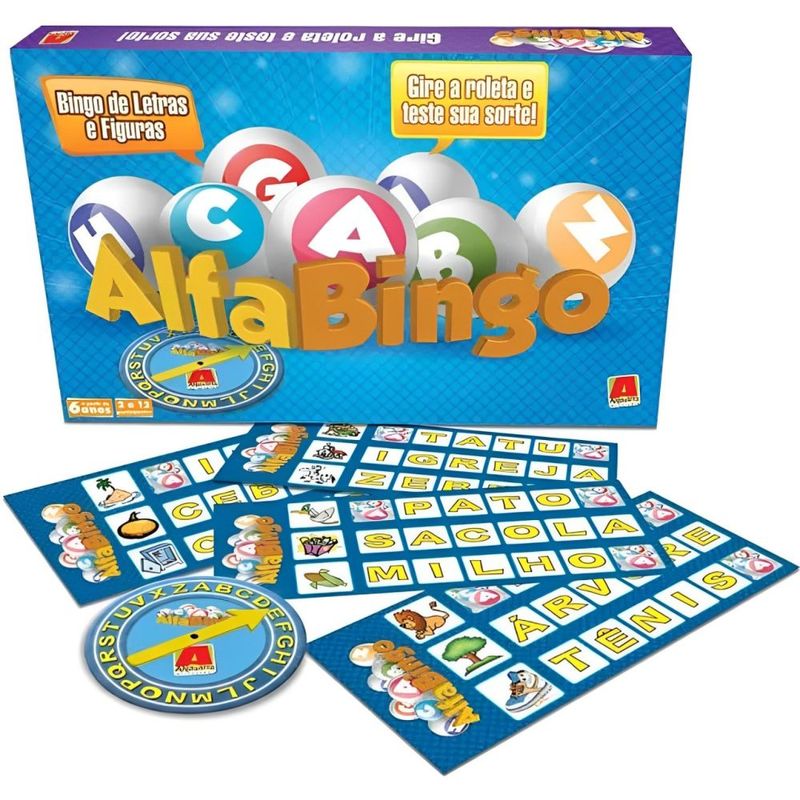 Brinquedos e JogosJogos e AcessóriosJogo Alfabingo Bingo de Letras Gire a Roleta - Algazarra