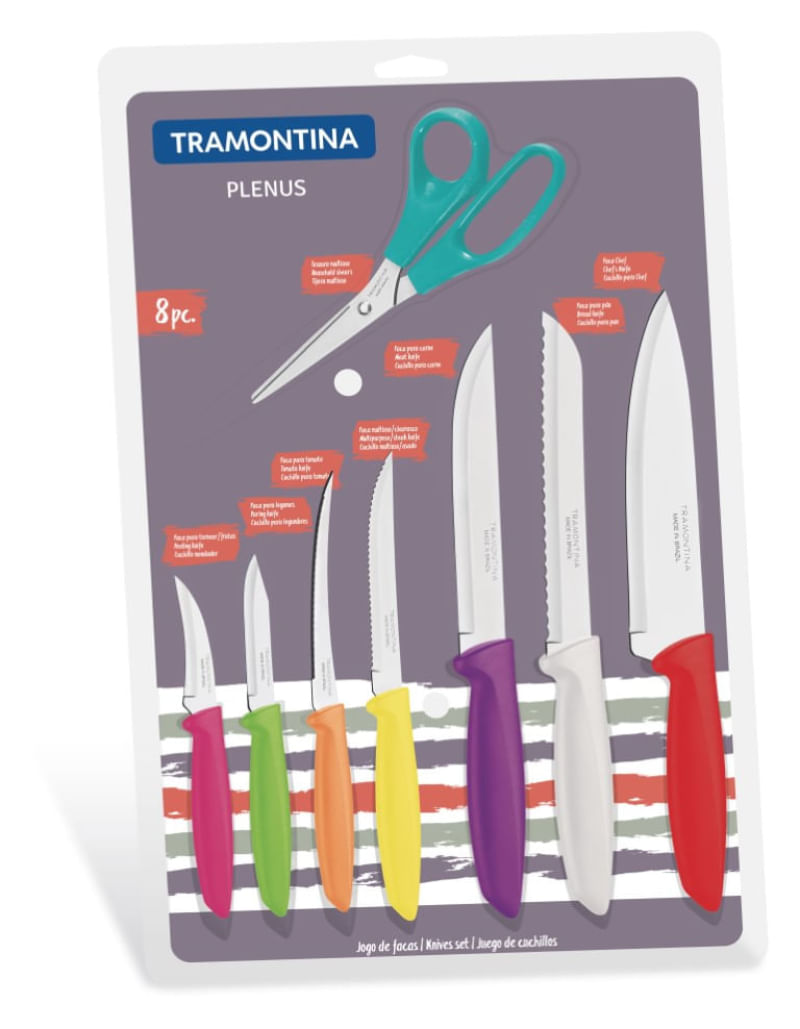 Jogo com facas e tesoura 8 peças coloridas linha Plenus Tramontina REF: 221183_Sicredi