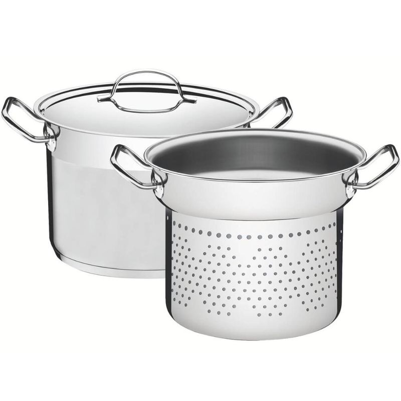 Casa e DecoraçãoUtilidades DomésticasJogo de PanelasJogo Cozi-Pasta Tramontina Professional em Aço Inox Fundo Triplo 2pçs Caldeirão Escorredor