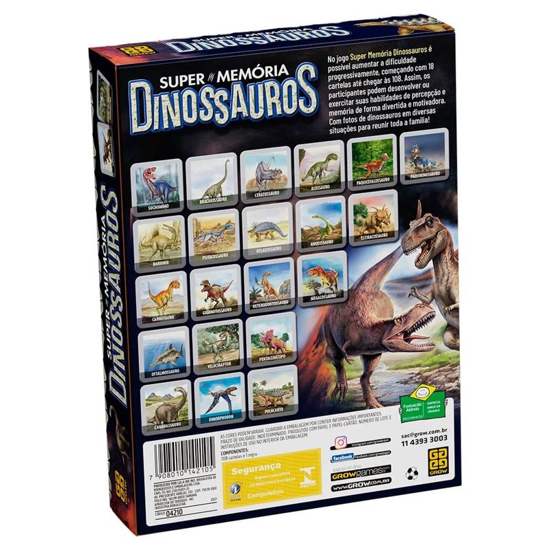 Jogo da Memória Dinossauros 54 Pares 04210 - Grow REF: 649459_Sicredi
