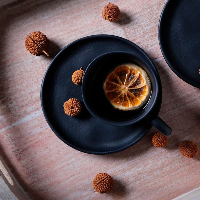 Jogo de 6 Xícaras de Chá 170 ml com Pires Descentraizado Preto Matte Porto Brasil REF: 7908416643206