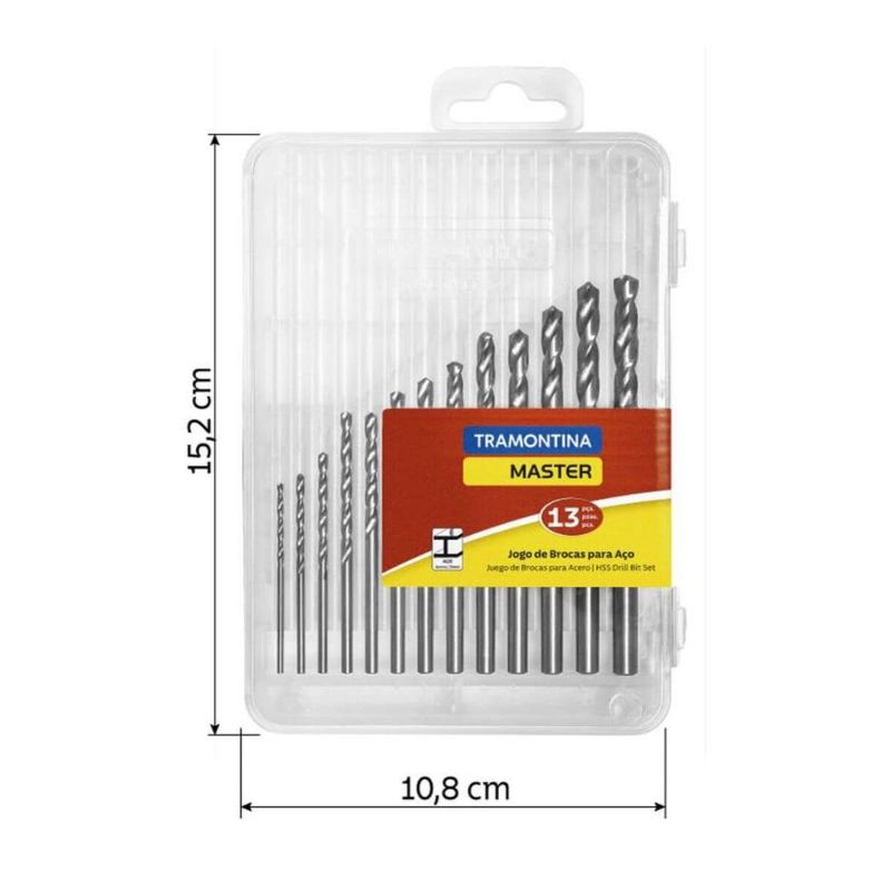 Jogo de Brocas 13 Peças em Aço Rápido HSS Tramontina Master Furadeira Aço Ferro Alumínio REF: 7891114140354