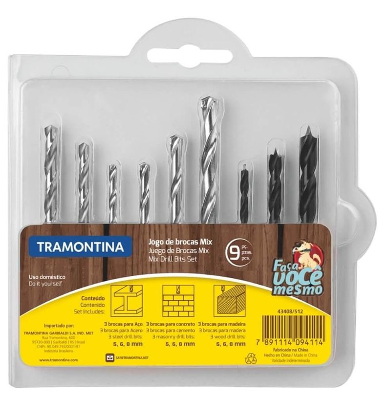 Jogo de Brocas Tramontina Mix 9 Peças REF: 7891114094114