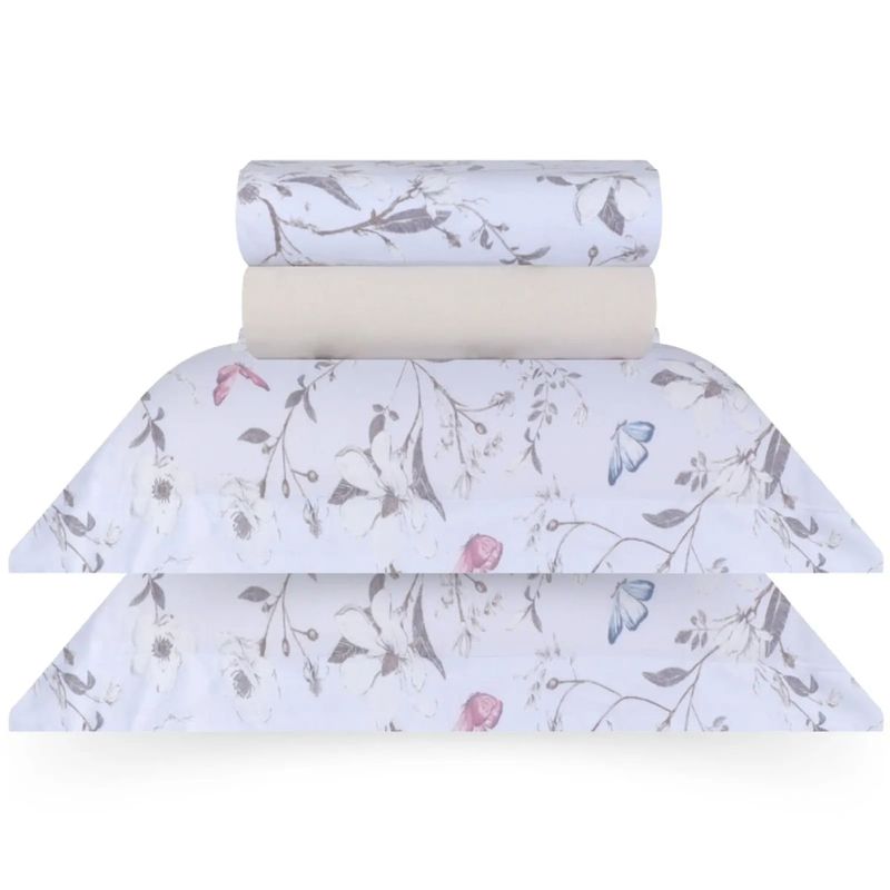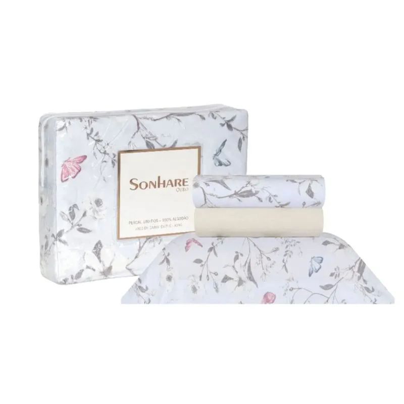 Casa e DecoraçãoCama, Mesa e BanhoJogo de lençolJogo de Cama King 4 Peças 180 Fios 100% Algodão Sonhare Ouro Alice - Sultan